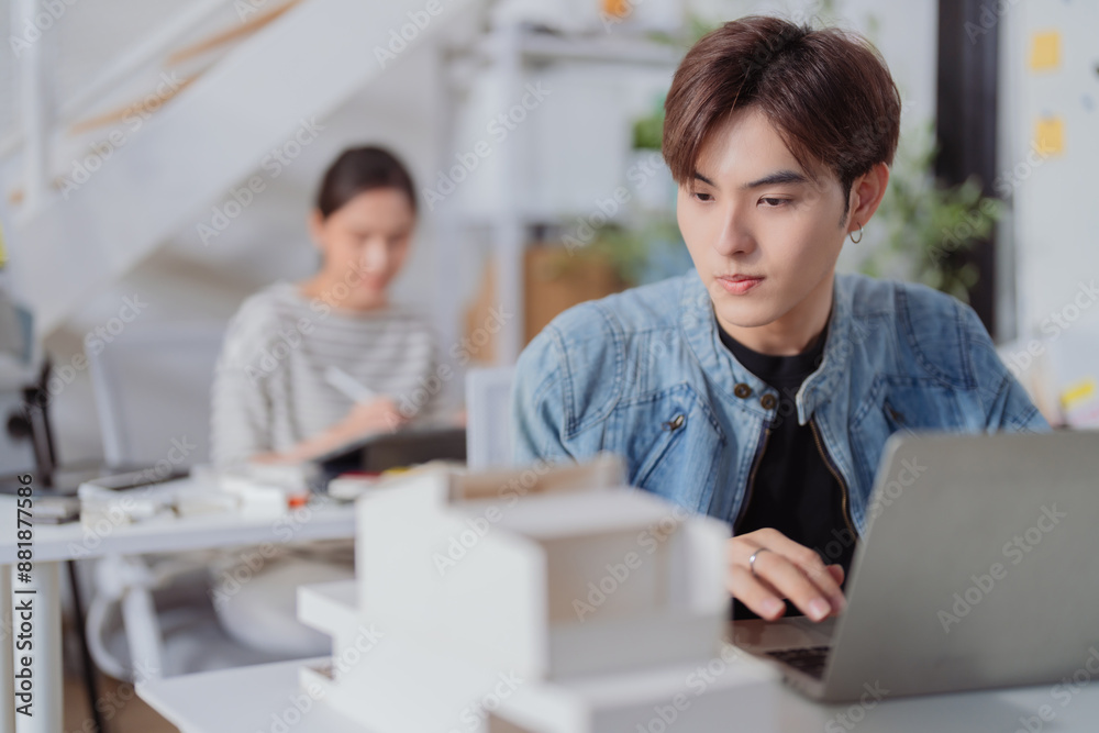 smart businessperson working at working station in modern office interior together creative marketing working use laptop checking schedule for new project presentation creative office concept