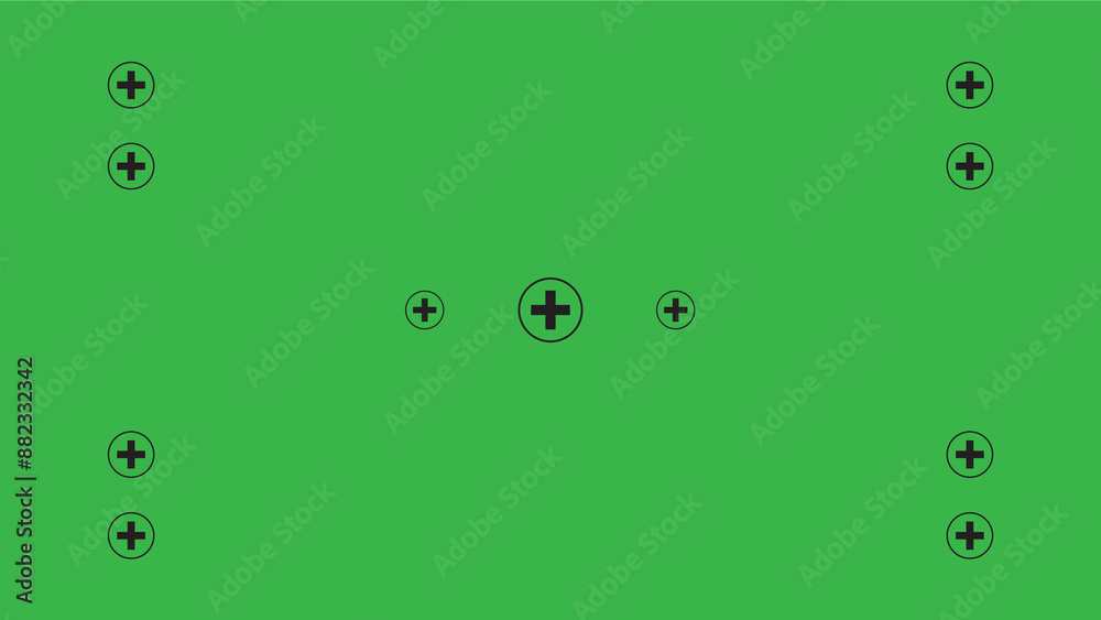Green screen with VFX motion tracking markers. Chroma key color video footage with track point. HD 4K green screen layout. Easy to use.