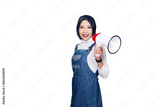 Hijab woman using megaphone isolated transparent
