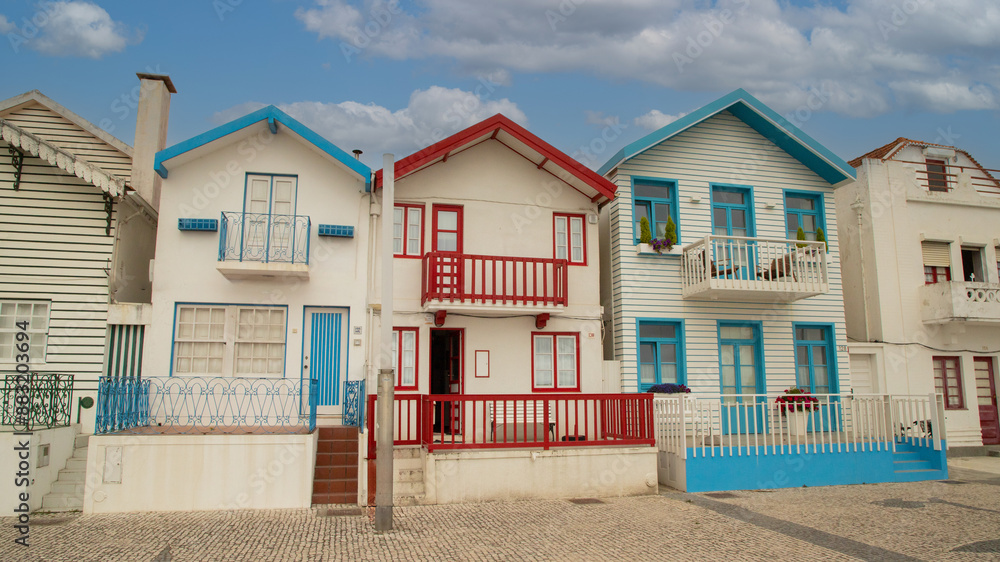 Costa nova Colorful striped fishermen's houses or palheiro in Costa Nova, Aveiro
