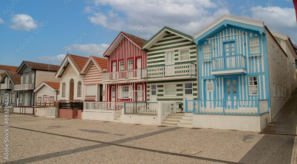 Costa nova Colorful striped fishermen's houses or palheiro in Costa Nova, Aveiro