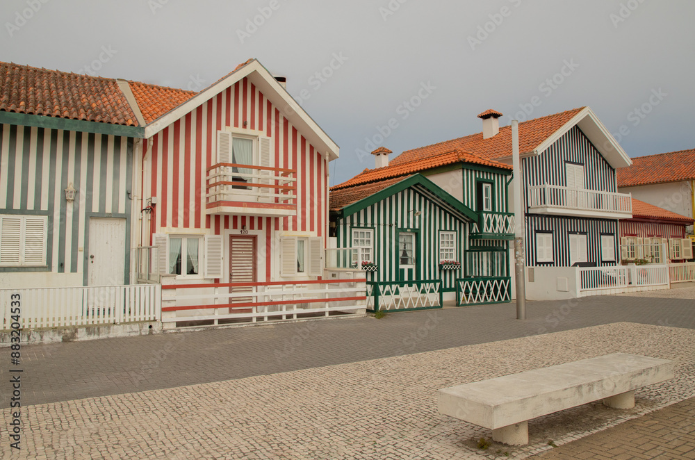 Costa nova Colorful striped fishermen's houses or palheiro in Costa Nova, Aveiro