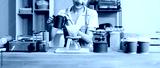 Asian barista brewing fresh espresso. Enjoy a cozy, trendy cafe experience with high quality beans in home or cafe