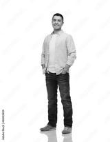 smiling man with hands in pockets