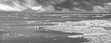 Iceberg, seascape or ocean in Arctic for view, nature and day in Greenland. Global warming awareness, melting ice and climate change on Earth with landscape, broken glacier and frozen water on banner