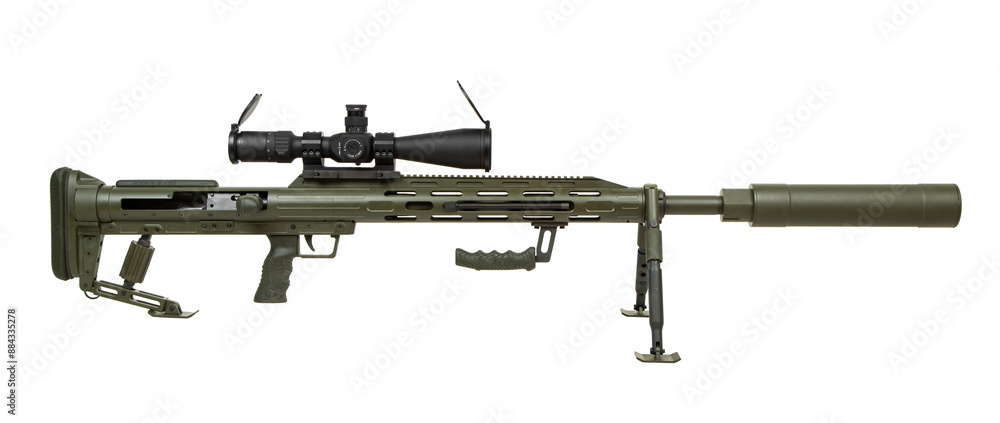 Large-caliber sniper rifle. Weapon for long-range shooting. Isolate on a white back.