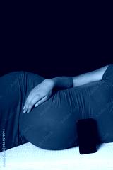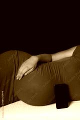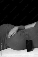 Happy pregnant girl lies on white background