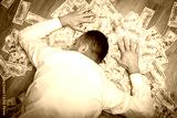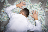 A Happy guy with money in his hands for the development of shopping business and a great trip