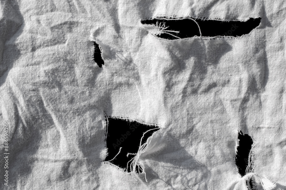 old torn white rag with black holes