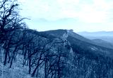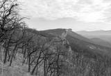 morning in a nature park, mountainous terrain panorama of rocky mountains and vegetation