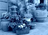 various traditional clay planters with decorative plants on ital