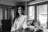Beautiful businesswoman takes room key card and doing check-in at the hotel reception