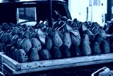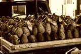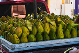 Sale of fresh avocados on the street, green and yellow fruits, mobile vending