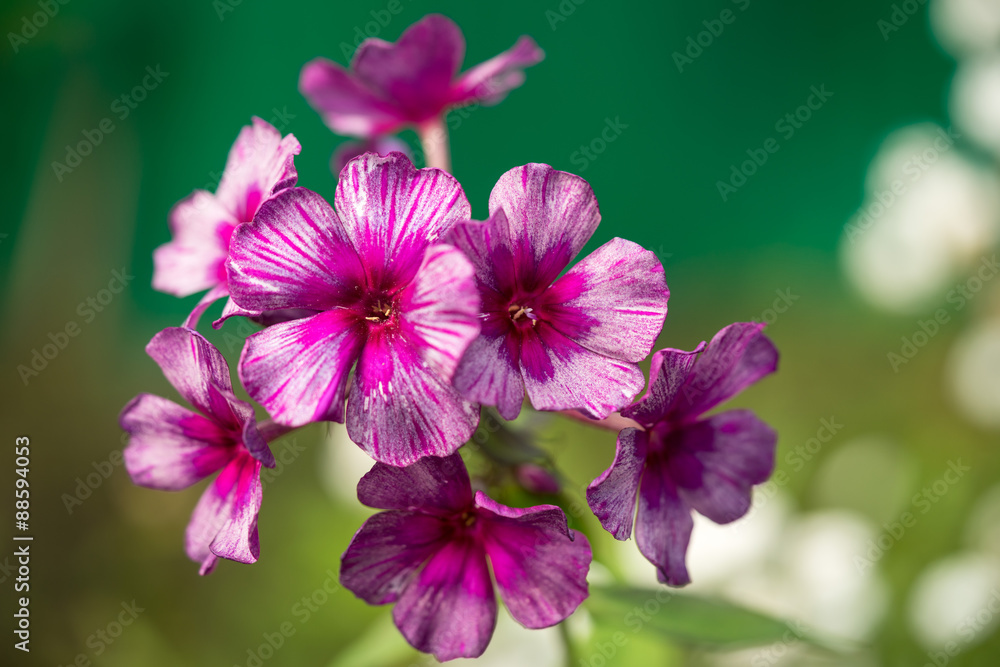 Purple and pink rare colored phlox flower - genus of flowering herbaceous plants with beautiful bokeh, selective focus