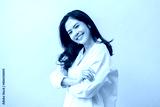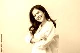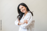 Smile positive, happy asian young woman wearing casual shirt, portrait of beautiful female with black long hair feeling prond, standing crossed arms looking at camera, isolated on white background.