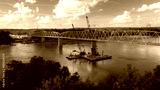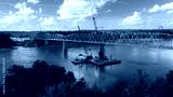 bridge over the Missouri river being repaired