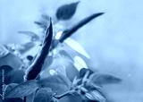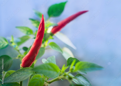 Red hot chili peppers at nature blue background.