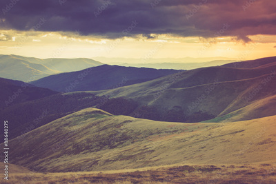 Autumn mountain hills at sunset.