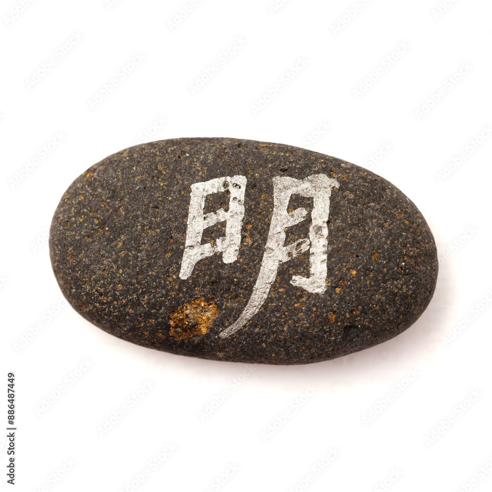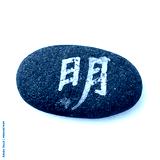 Chinese character ming or Japanese mei, meaning bright, written on a rock pebble