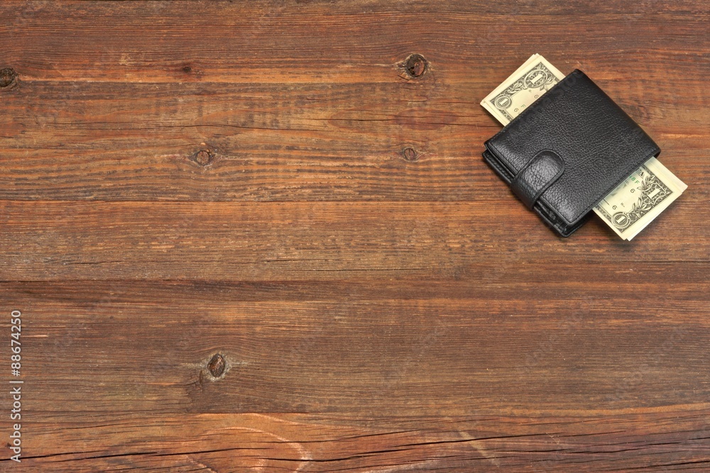Men's Wallet With Dollar Cash On The Rough Wood Background