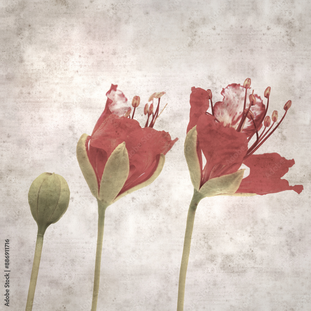 square stylish old textured paper background with Opening flowers of Delonix regia or flamboyant