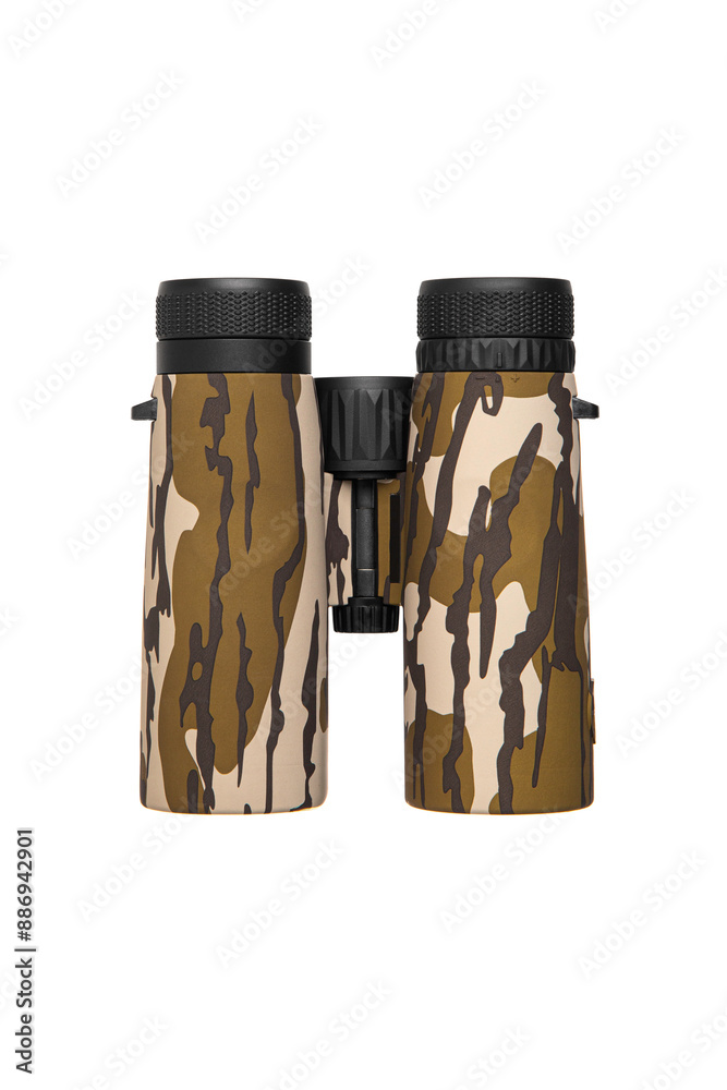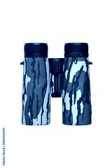 Modern binoculars in camouflage coloring. An optical instrument for observation at long distances. Isolate on a white back