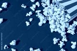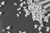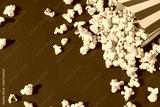 Striped box with popcorn on a red background
