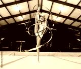 Portrait, ribbon and dance with a gymnastics woman in a studio for olympics training, exercise or dancing. Fitness, art and gymnast with a female dancer in a gymnasium for rhythmic practice