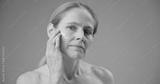 Real people - age, beauty, health and dry skin care concept - beautiful mature Caucasian middle aged woman in her 50s applying moisturizer to her face