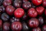 Many cherry plums with water drops