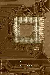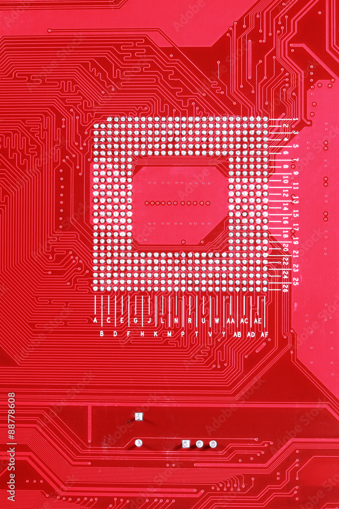 Red circuit board texture background of computer motherboard
