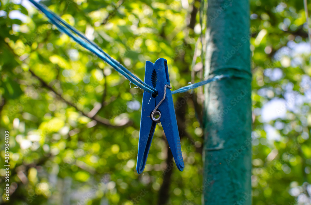 Clothespins and Clothes line on blur background