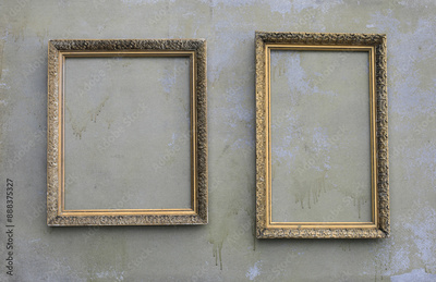 vintage picture frames on an old concrete wall