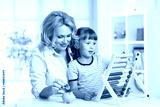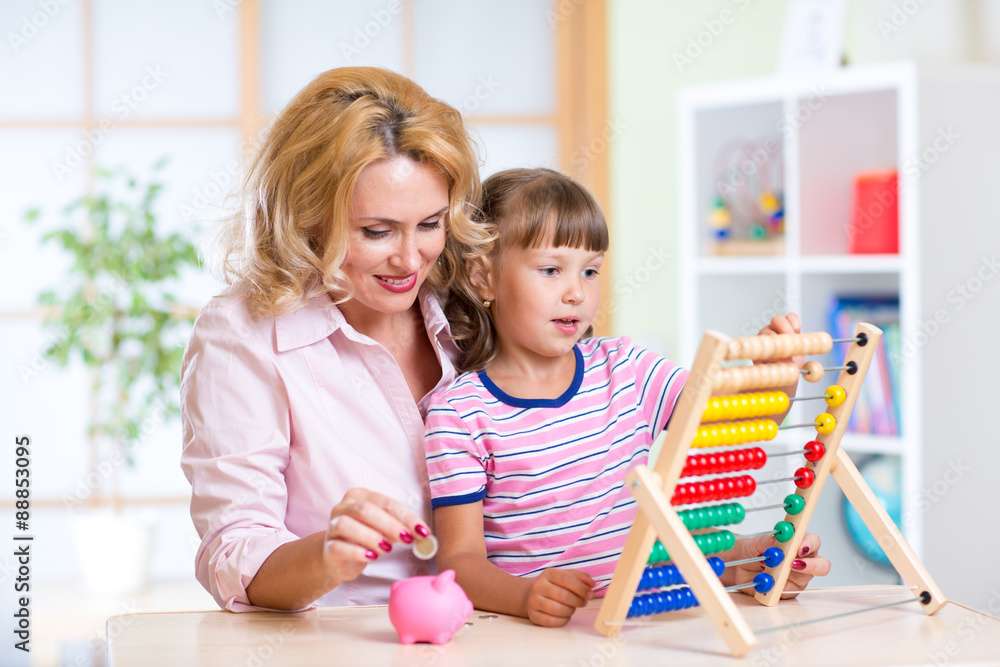 Mother and daughter putting coins into piggy bank