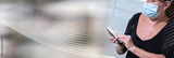 Woman disinfecting smartphone; prevention of virus and bacteria infection; panoramic banner