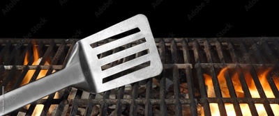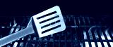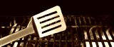 Spatula On The Hot Flaming BBQ Grill Close-up