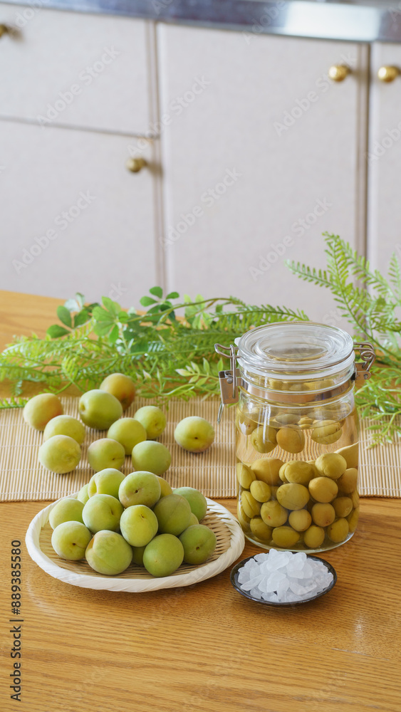 日本の梅酒・イメージ|梅と氷砂糖と梅酒