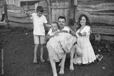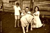 Cute family playing in a summer field
