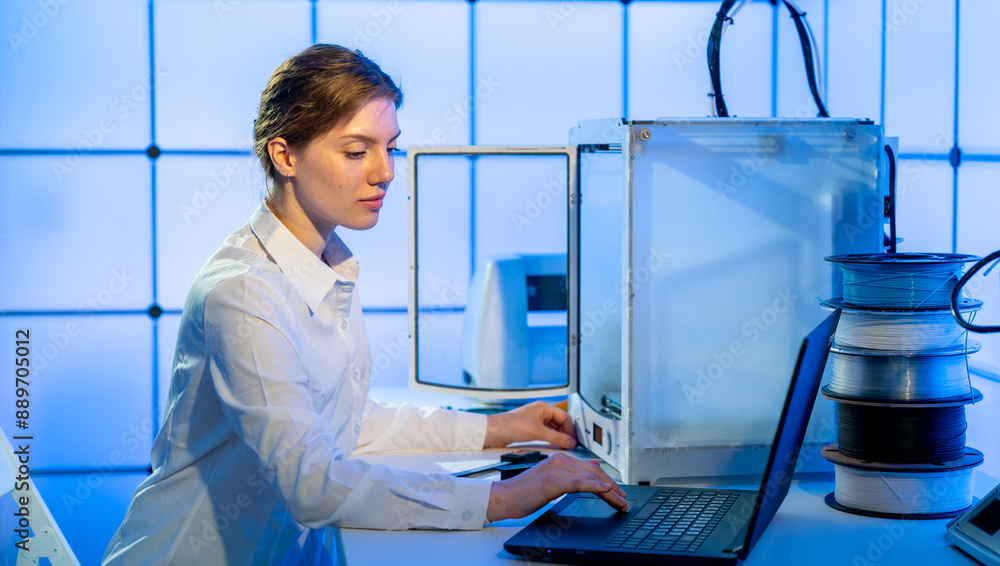 young woman engineer working in 3D printing laboratory