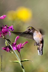 Immature Broad-tailed Hummingbird in hummingbird mint