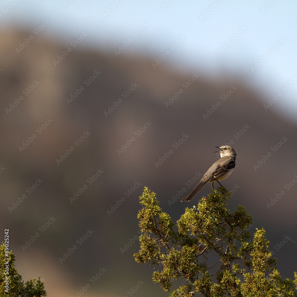 Northern Mockingbird sings at dawn in Palo Duro Canyon State Park in Texas