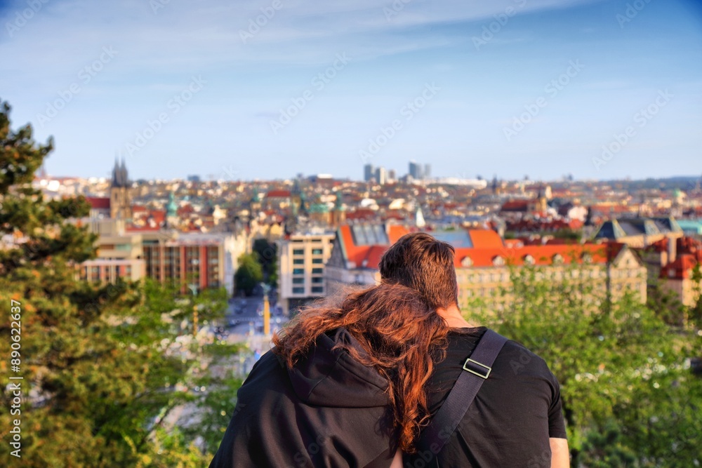 Couple city break in Prague. Top landmarks of Czech Republic.