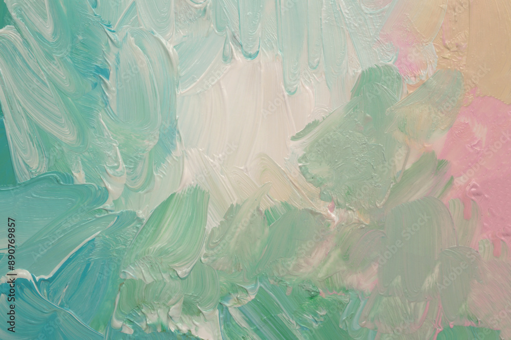 Art hand drawn oil, acrylic smear blot canvas painting. Abstract texture beige, pink, blue pastel color stain brushstroke texture background.