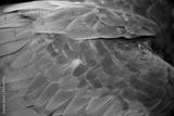 Close-up on Colorful quill of Scarlet Macaw, background