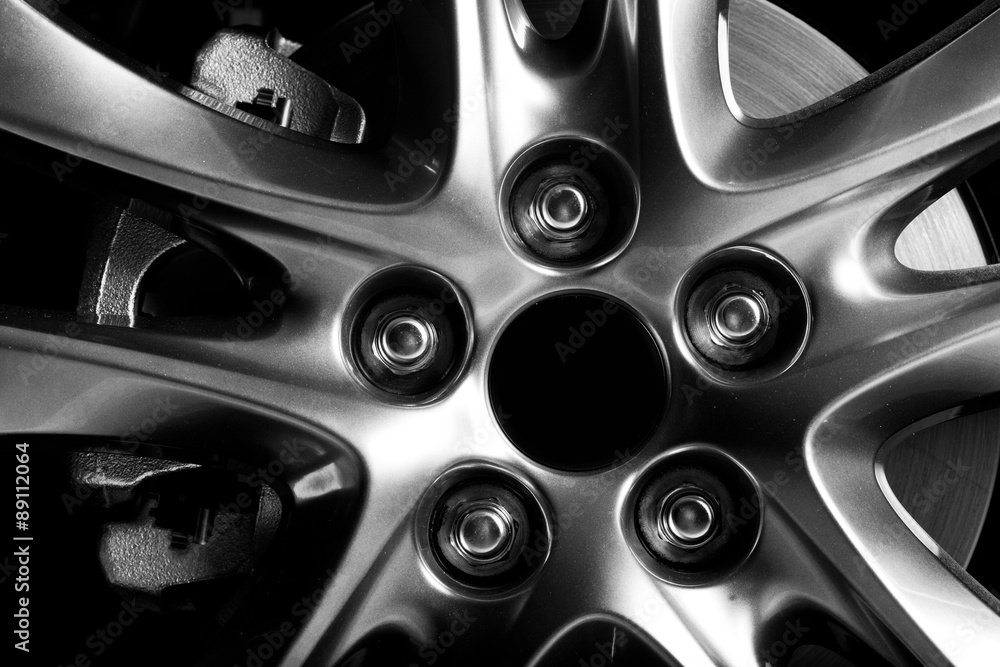 Close-up of aluminium rim of luxury car wheel