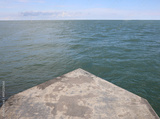 Deserted pier end on a calm summer seashore