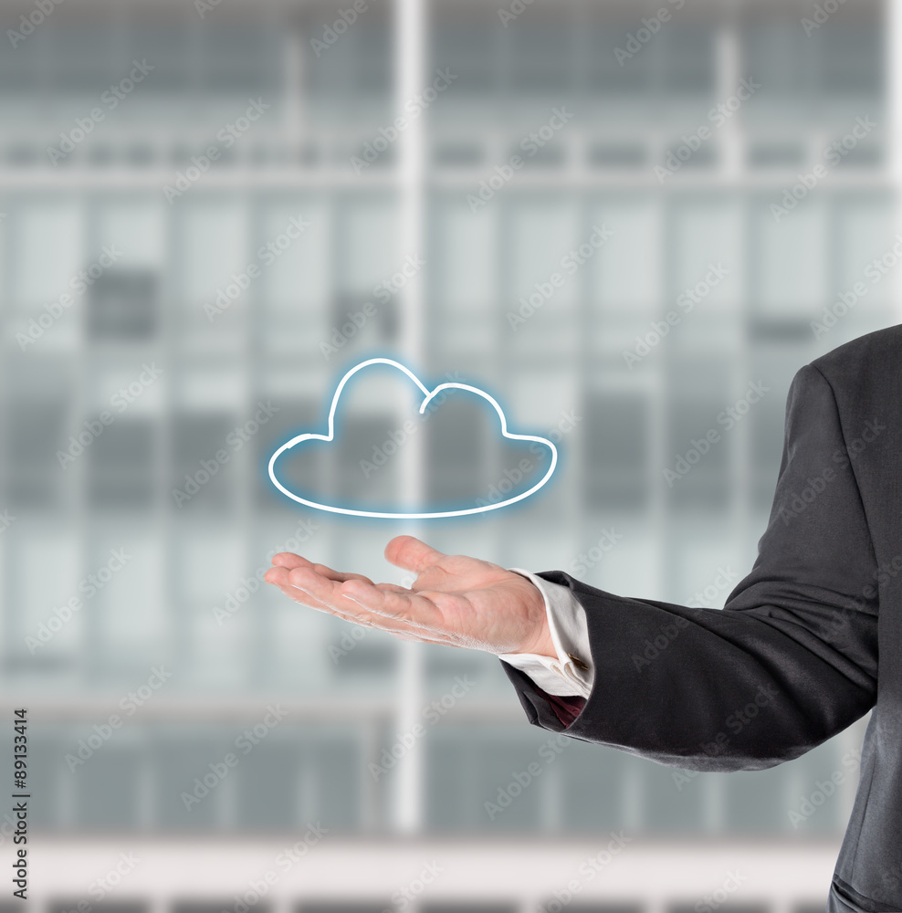 Businessman, salesman, with a virtual symbol (cloud)