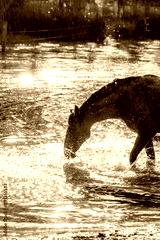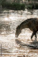Horse horses having fun in water splash plashes pool lake paddock paradise