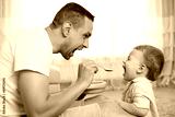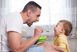 Handsome young man is feeding his child