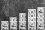 American dollar. 100 dollar bills stacked upwards. Increasing scale. Financial concept, market analysis, copy space